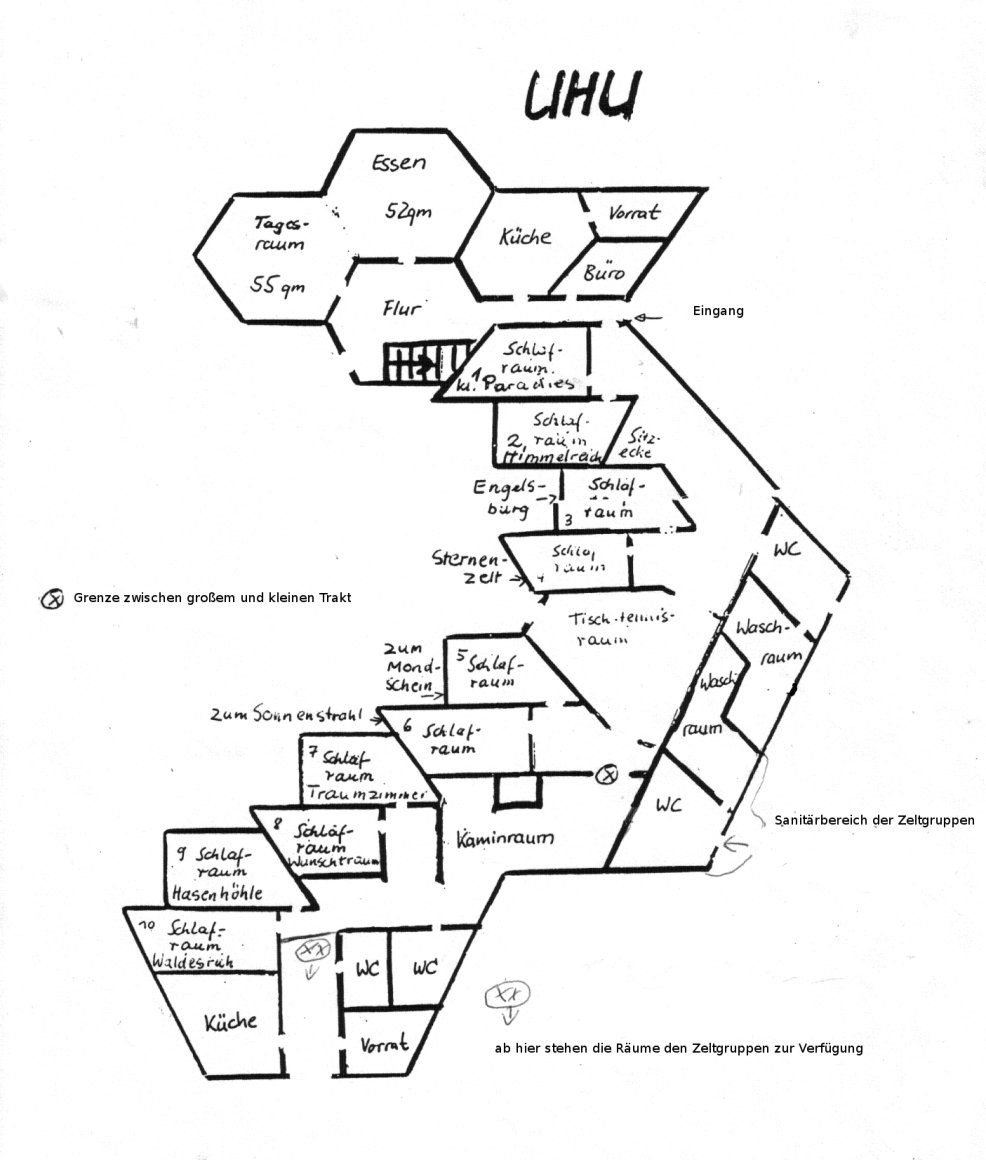 Der "Uhu" hat kein Küchen- oder Servicepersonal. Jede Gruppe kann ihren Aufenthalt frei gestalten und ist für alles selbst verantwortlich.